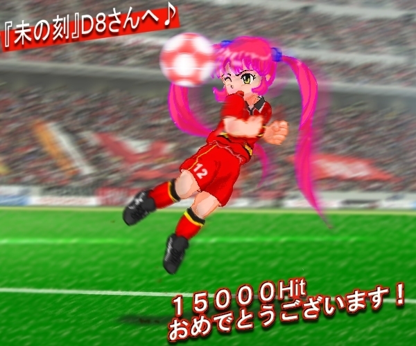 hiko-tさんから頂いた15,000hit記念絵。 見よ!この躍動感溢れるCG。グランパス。そしてみちるんるん。 hiko-tさんの全てがココに詰まってる感じ。 実は最初送って下さったものをもう一度修正して送って下さっていたり。 そういった所、おざなりにせずお送り下さるhiko-tさんに感謝感謝。 しかも、まさか15,000hitで頂けるとは思ってもみなかったのでいと嬉し。 っつーか、やっぱみちるは外せないのね…(^_^;)